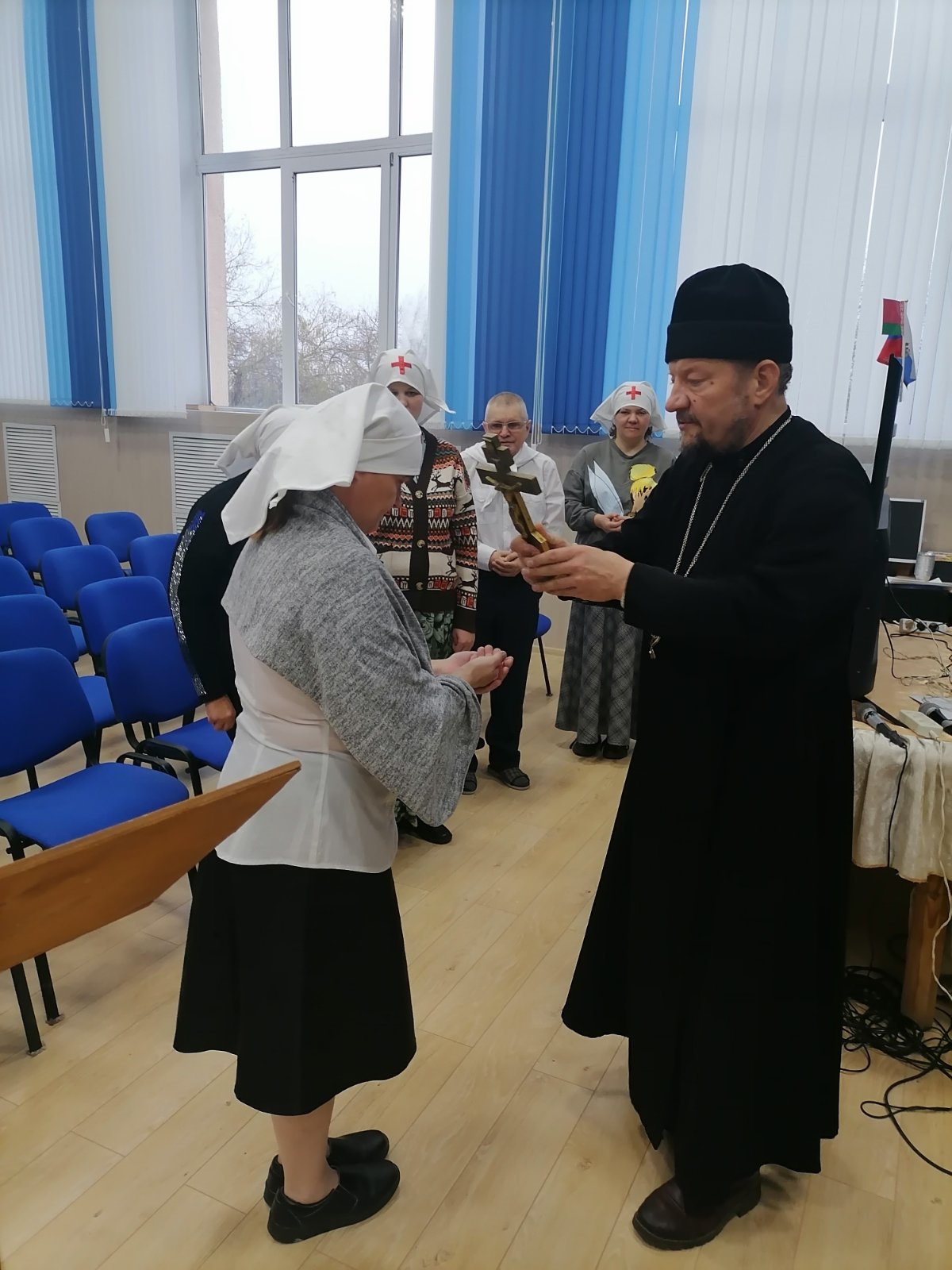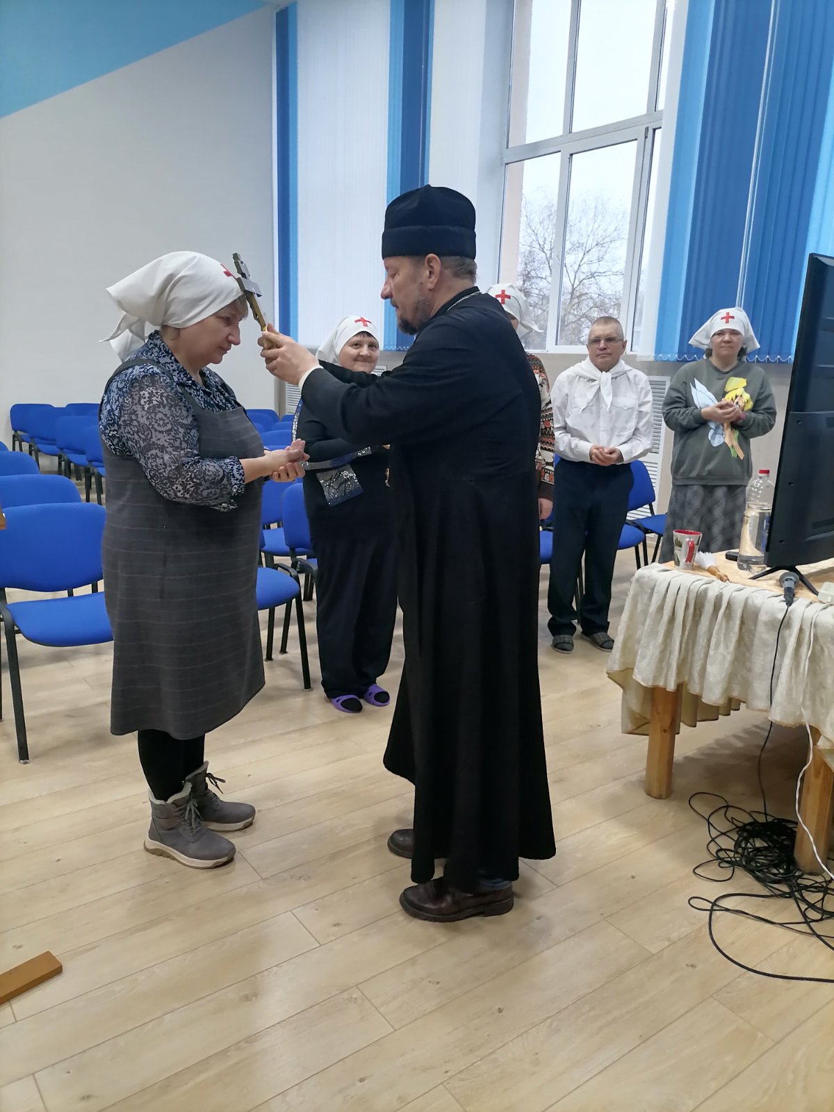 Духовник пансионата протоиерей Александр Лазовский благословил желающих служить ближним.