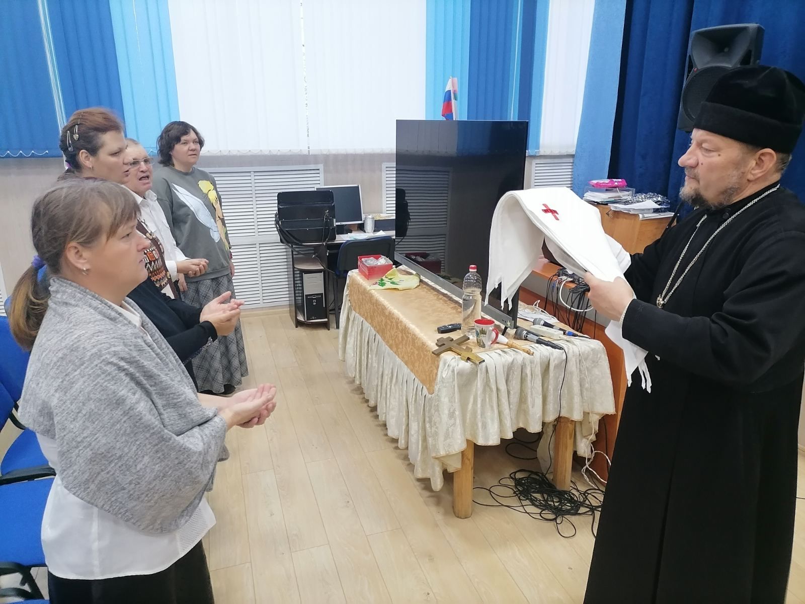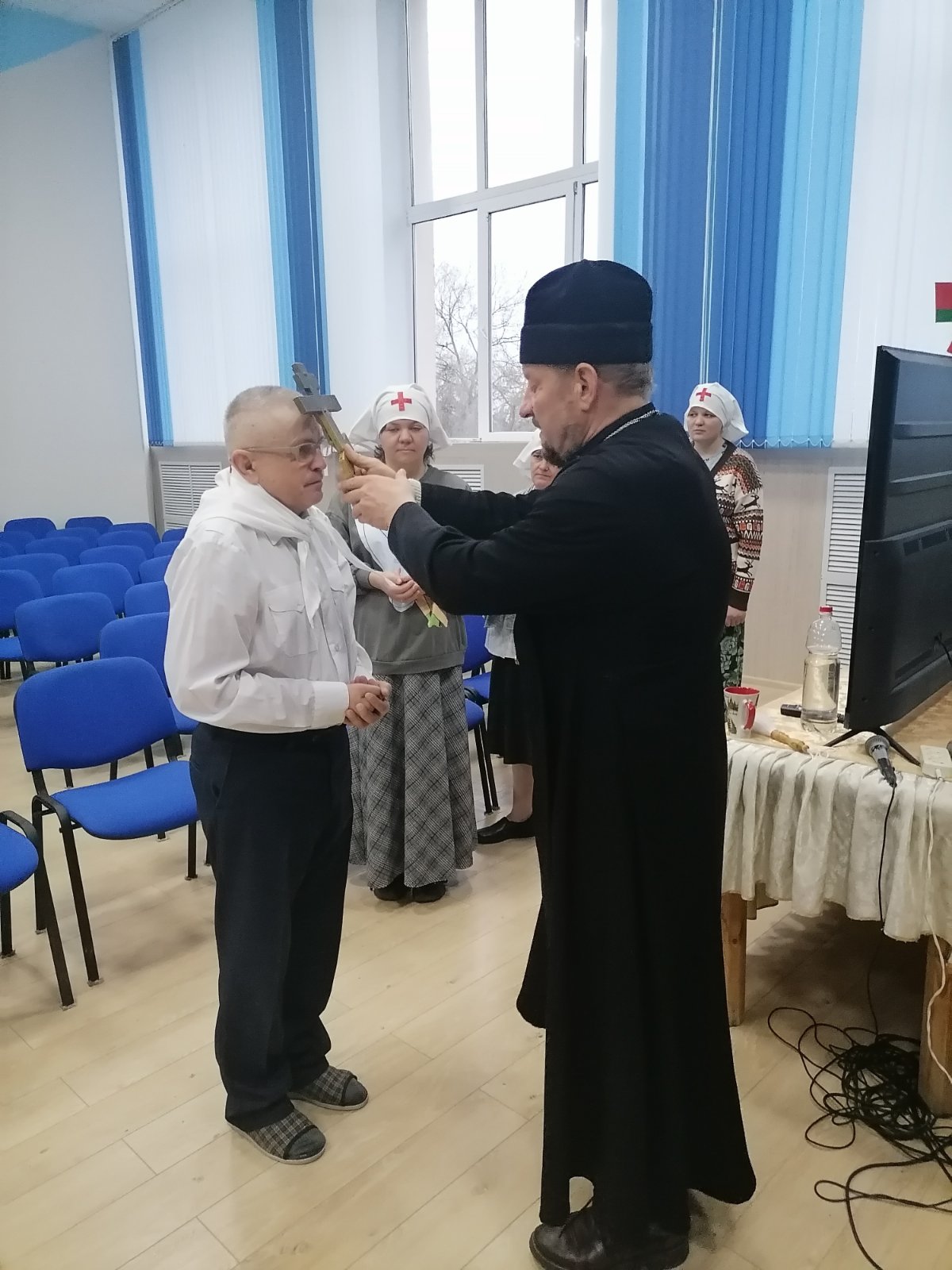 Духовник пансионата протоиерей Александр Лазовский благословил желающих служить ближним.
