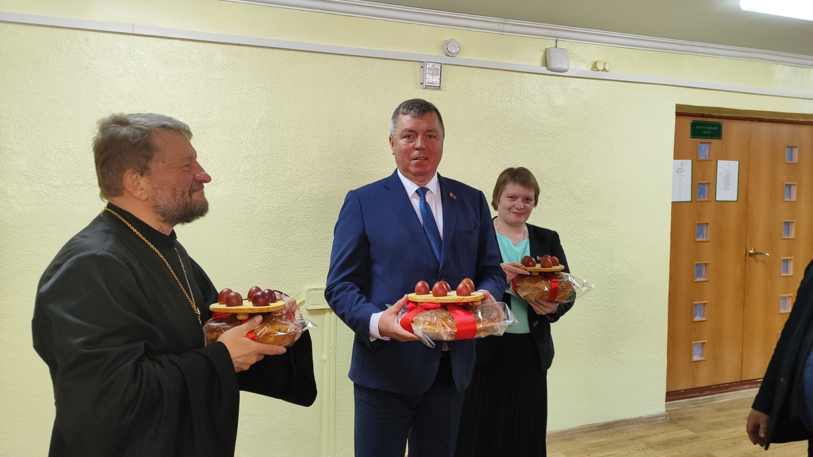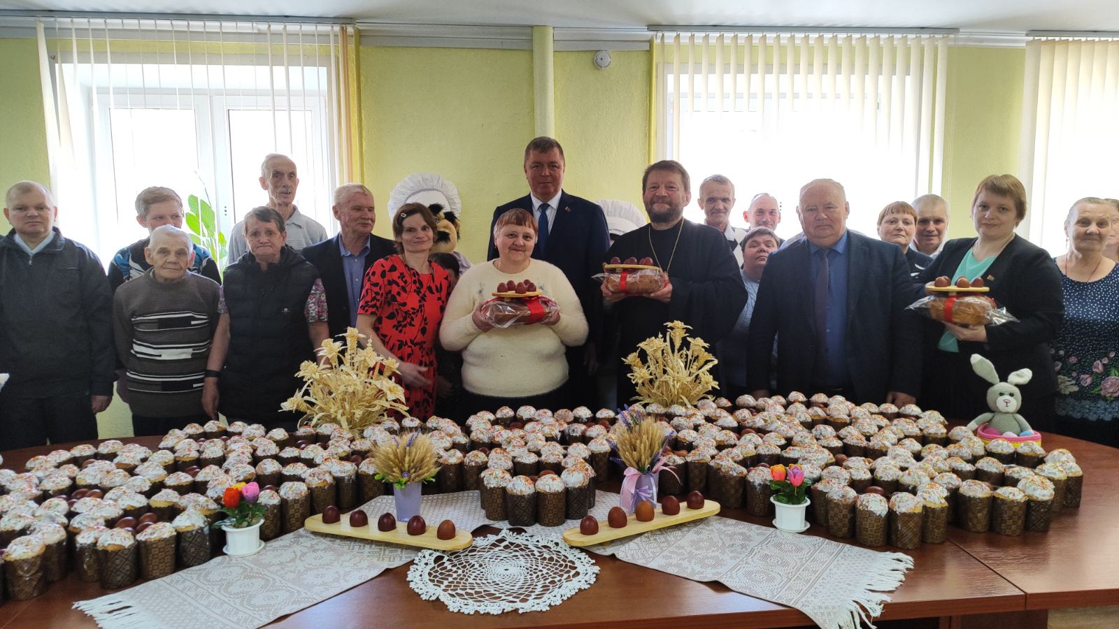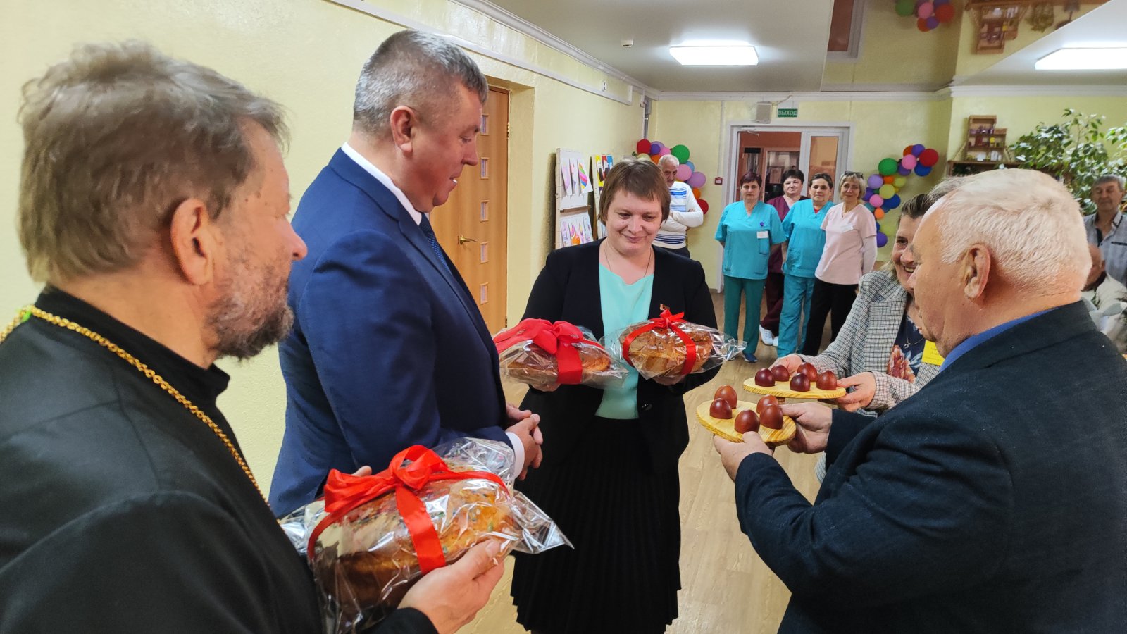 13 апреля 2026 г. в Червенский социальный пансионат "Мир доброты" по доброй традиции приехали с пасхальными куличами председатель РИК Новицкий В.М., начальник управления по труду, занятости и социальной защите Русецкая Е.Л. и настоятель церкви Рождества Пресвятой Богородицы д. Иваничи протоиерей Александр Лазовский.